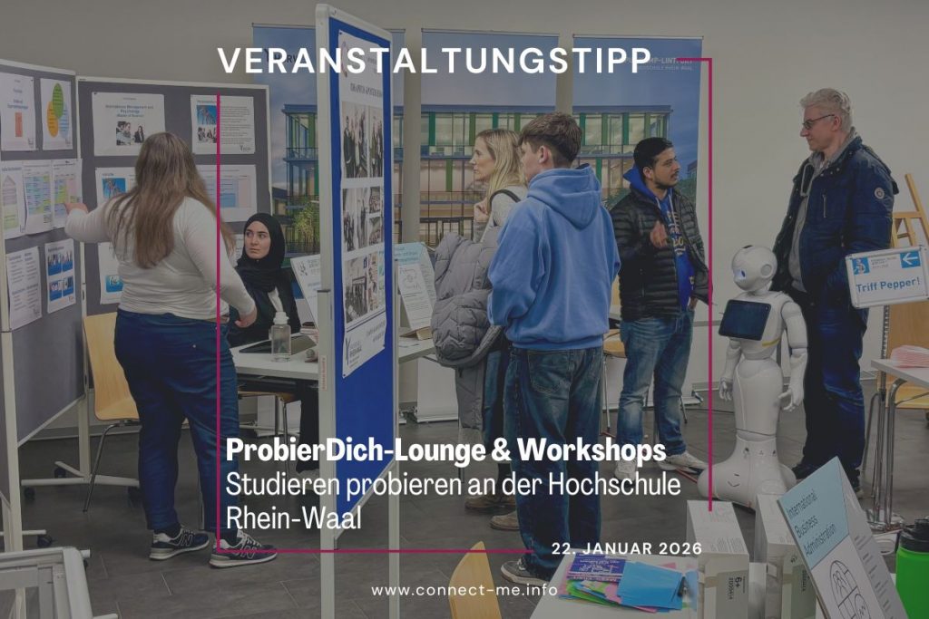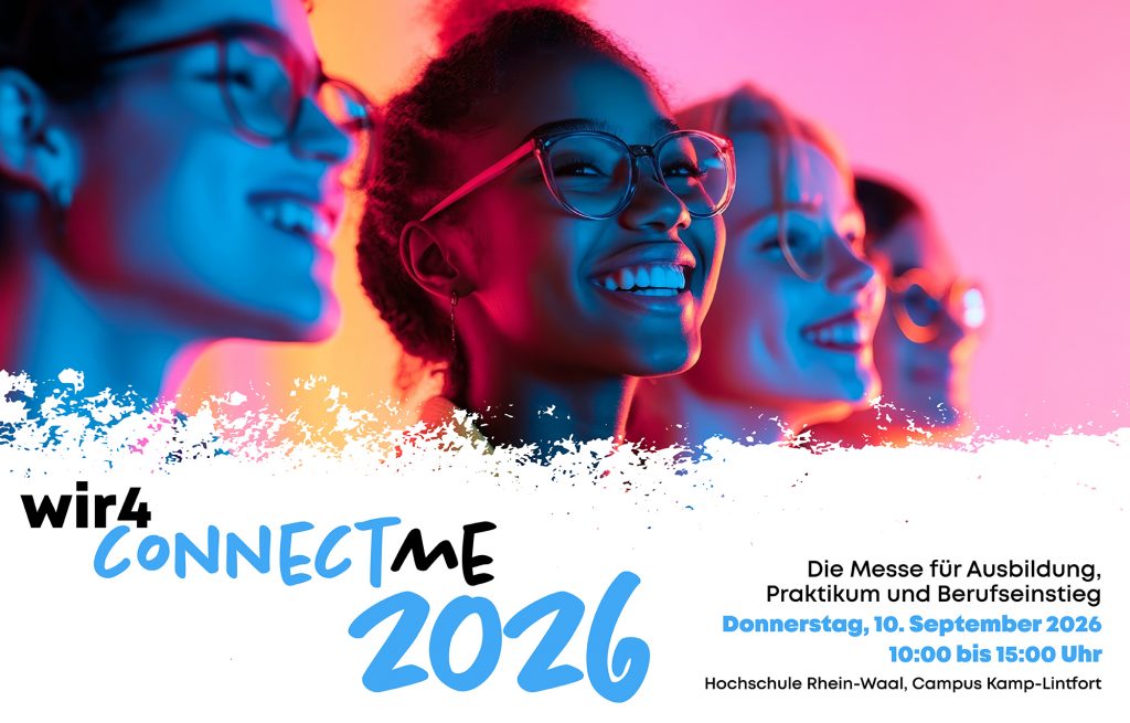 Das „Netzwerk für Ausbildung und Beschäftigung“ steht als Initiator und Veranstalter hinter der connect me. Kooperationspartner ist die Hochschule Rhein-Waal am Campus Kamp-Lintfort.